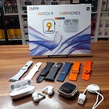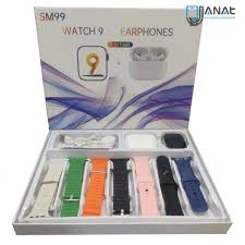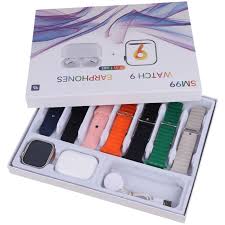 ساعت هوشمند مدل SM99 :این مدل در قالب پکهایی همراه با لوازم جانبی متنوع مثل بندهای متعدد وایرپاد عرضه میشود.